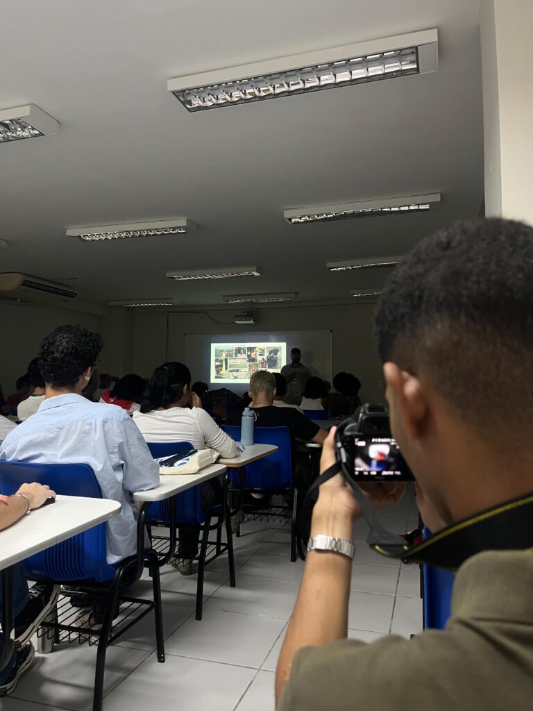 “Um olhar profundo, humanizado e espirituoso é capaz de enxergar um universo inteiro em uma simples formiga”- Rierson Marcos, publicitário em formação pela UFRN. Nessa última tarde de quarta-feira (18), o estudante trouxe uma perspectiva diferente sobre o trabalho fotográfico a partir da oficina de Linguagem Fotográfica da Secom 2026 (Semana de Comunicação). Em um tom leve e descontraído, ele abriu um espaço de conversa e abordou tópicos como a fotografia contemporânea; a narrativa visual; a composição fotográfica e a representatividade na comunicação visual.