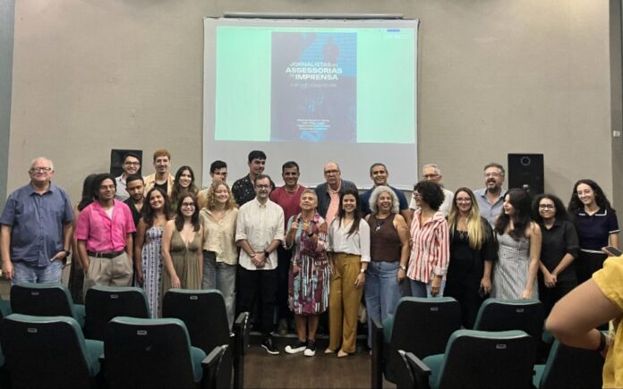 O quarto dia da Semana de Comunicação (Secom) da UFRN aconteceu nesta quinta-feira (19), no auditório 1 do Departamento de Comunicação (Decom), com o lançamento do livro “Jornalistas em assessorias de imprensa: experiências do RN”. O encontro reuniu os coordenadores do projeto Coletânea de livros “Jornalismo Potiguar”, Socorro Veloso e John Willian Lopes, os organizadores desta edição, Thainá Trajano e Tony Lucas Carneiro, e os prestigiados contribuintes e entrevistados do projeto.