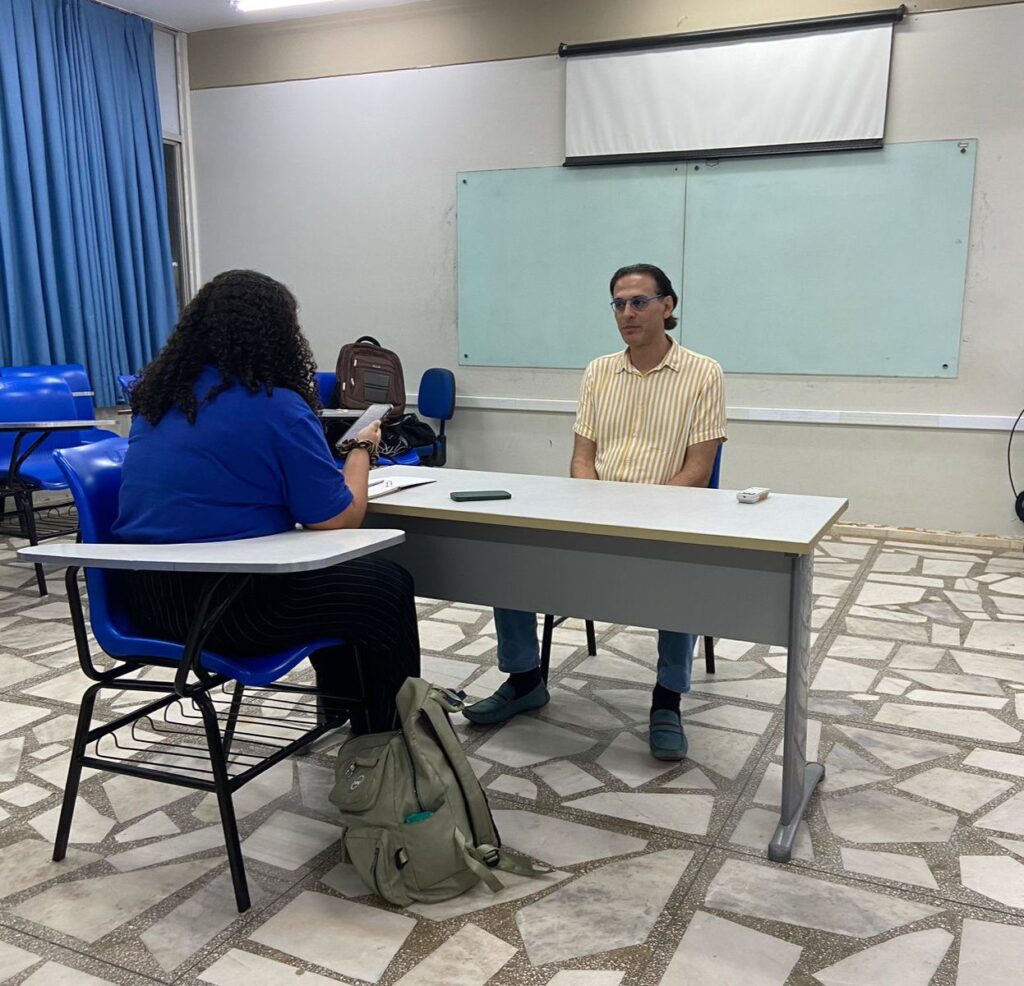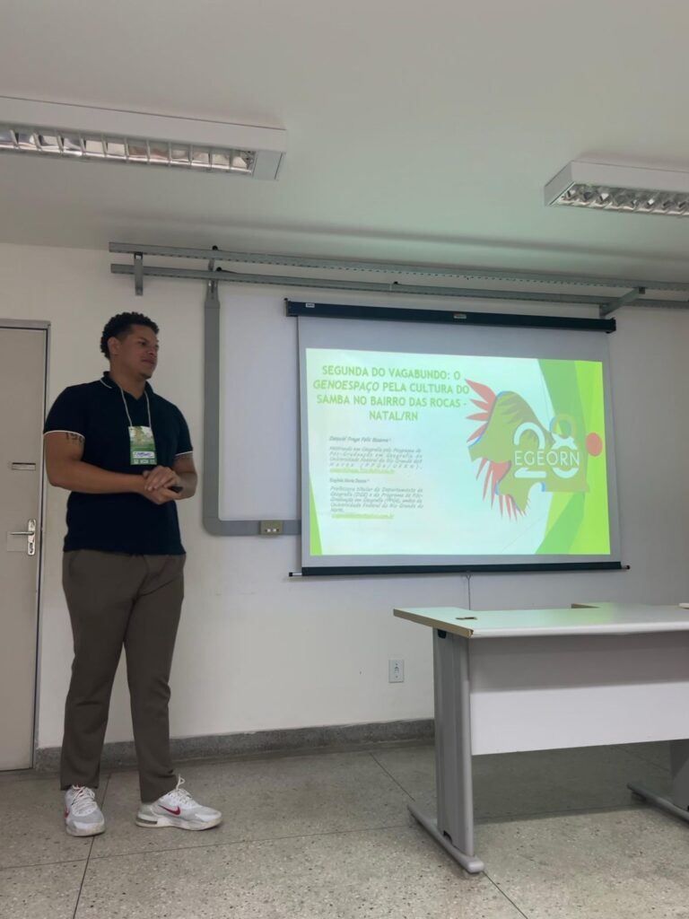 “Eu sou Alessandro Dozena, professor de geografia, pesquisador e músico. Eu tenho formação em geografia pela Unesp Rio Claro, pós-graduação na USP em São Paulo. Eu sou paulista de nascimento e fui adotado pelo Rio Grande do Norte em 2010. Eu sou músico, formado pela ULM, Amizade Livre de Música, que existiu lá em São Paulo, na capital. Bom, eu sou pesquisador das áreas culturais, geografia cultural, humanista, e estou aqui em Natal desde 2010, na UFRN. Ocupando uma vaga que foi inaugurada, a gente pode dizer, pelo nosso grande estudioso das culturas brasileiras, norte-grandenses, nordestinas, que foi o Câmara Cascudo. Eu, quando passei no vestibular, não tinha ideia desse fato. Descobri depois, assim, conversando com uma secretária. Então, pensem na responsabilidade de continuar uma trajetória de um grande pesquisador, que foi o Câmara Cascudo, um dos grandes de todos os tempos. E como músico, eu sempre trabalhei com música, com arte. Na atualidade, a gente fundou, nesse ano mesmo, 2025, um grupo vocal chamado Potivozes. É um quarteto vocal da Escola de Música da UFRN.”